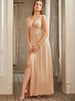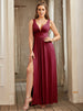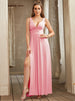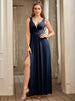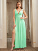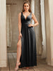 Glamorous Deep V-Neck Sleeveless Floor-Length A-Line Prom Dresses with Slit